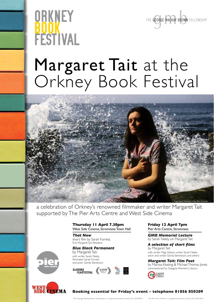 Dr Sarah Neely delivered the annual George Mackay Brown Memorial Lecture, Margaret Tait: Film-maker and writer at the Pier Arts Centre. The lecture was accompanied by short films from the Pier Arts Centre’s collection and readings of Margaret Tait’s poetry by Gerda Stevenson, Magi Gibson and Alison Miller. The documentary Margaret Tait: Film Poet by Marissa Keating and Michael Thomas Jones, commissioned by the Glasgow Women’s Library and featuring interviews with the family and friends of the filmmaker, was shown for the first time in Orkney.