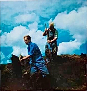 This was one day out in the Highland Park peat hill at Hobbister in Orphir. My grandad had retired by this time, in 1986, but was back at Highland Park to look after the students who were employed each summer to raise the peats.