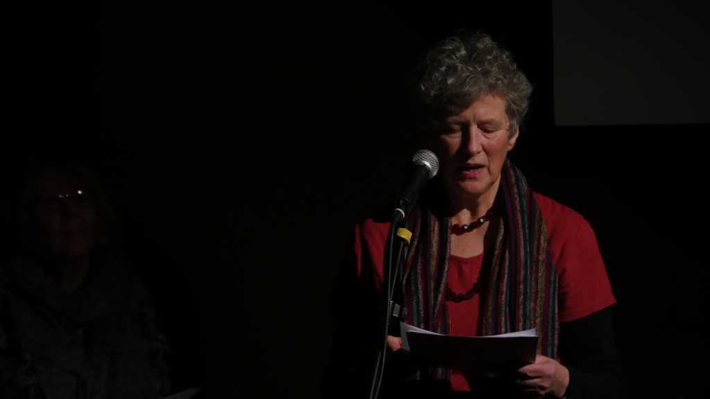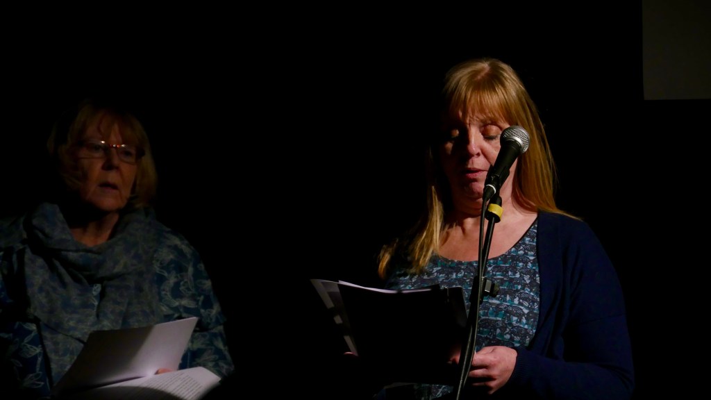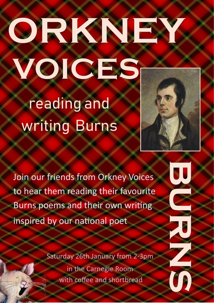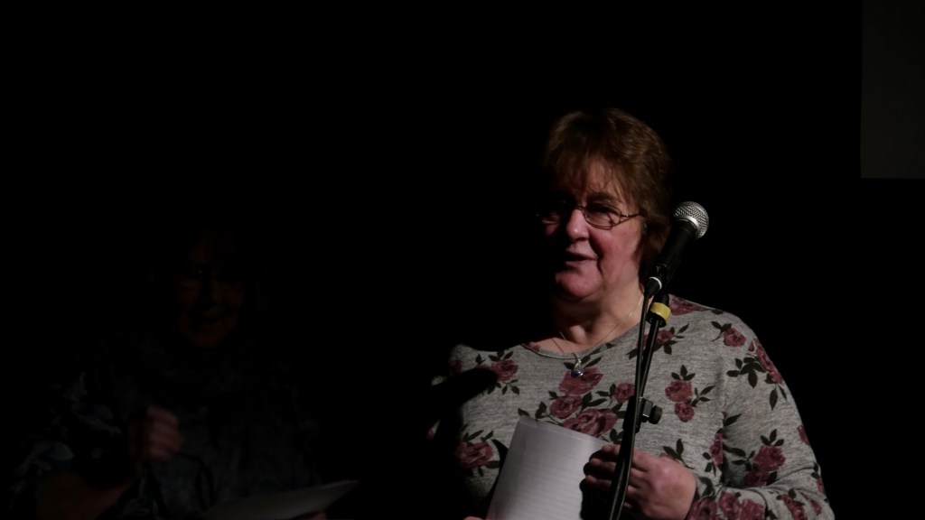 They haev performed thir poems an stories – or haen them read by ither group members – at the George Mackay Brown Fellowship Orkney Book Festival, 2017; Book Week Scotland, Orkney Library, 2017; Scottish PEN event in Edinburgh, February 2018; The Reel Summer Concerts, 2018 & 2019; Armistice Day November 2018; the Kirkwall BID Burns Days, January 2019 & 2020; West Side Cinema International Women’s Day event, March 2019. In January 2021, no able tae meet in person, we performed an recorded a Burns event on Zoom.
